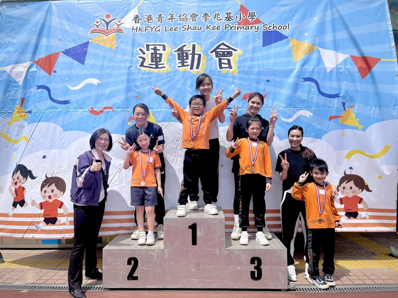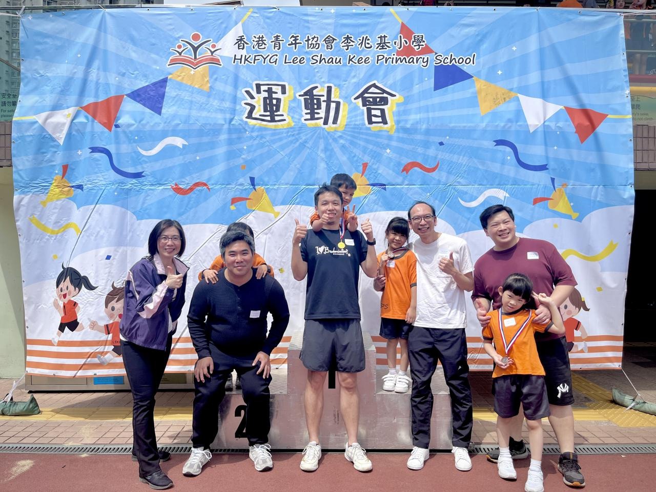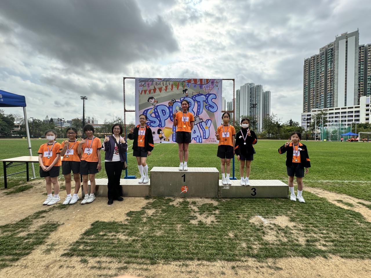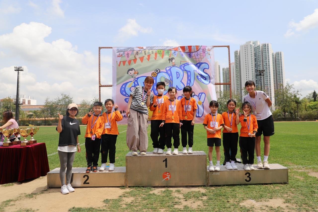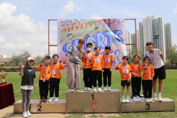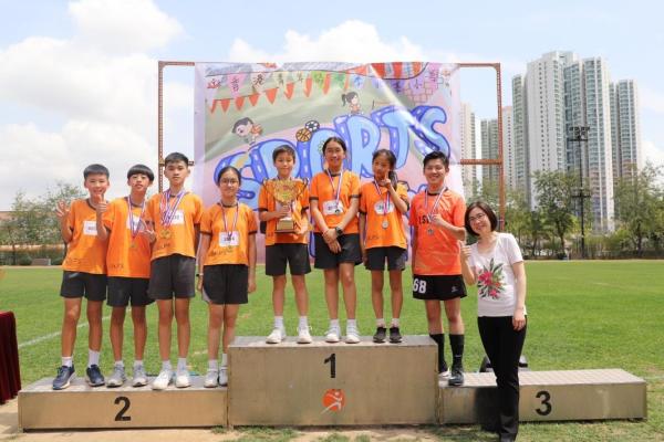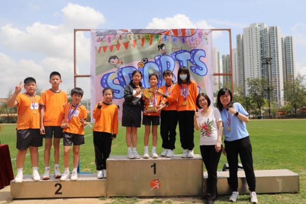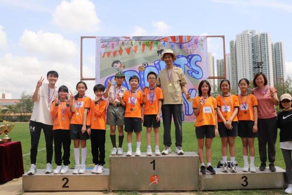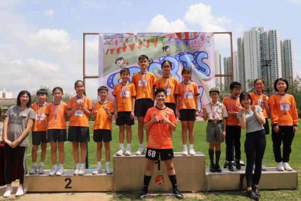 各班同學在看台上落力的打氣,令場外場內都充滿團結的氣氛﹗今次運動會的成功有賴不同單位的協助,包括本校的家長義工,