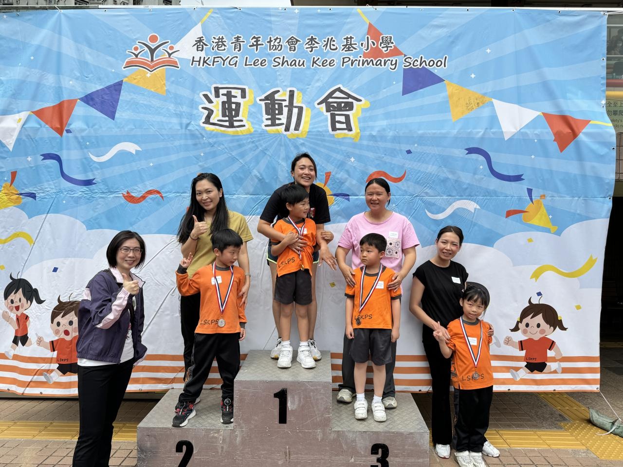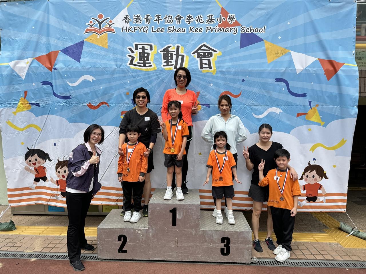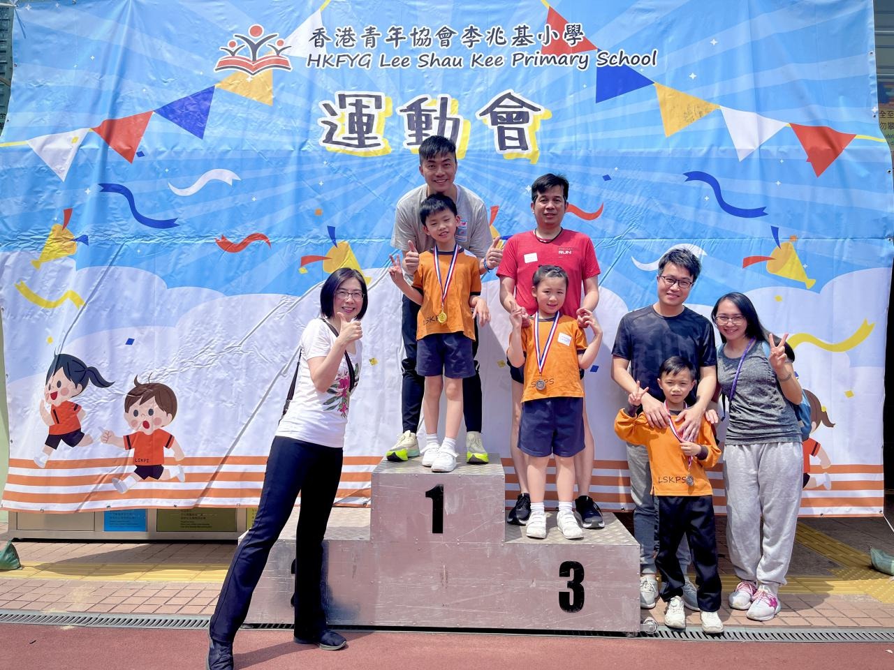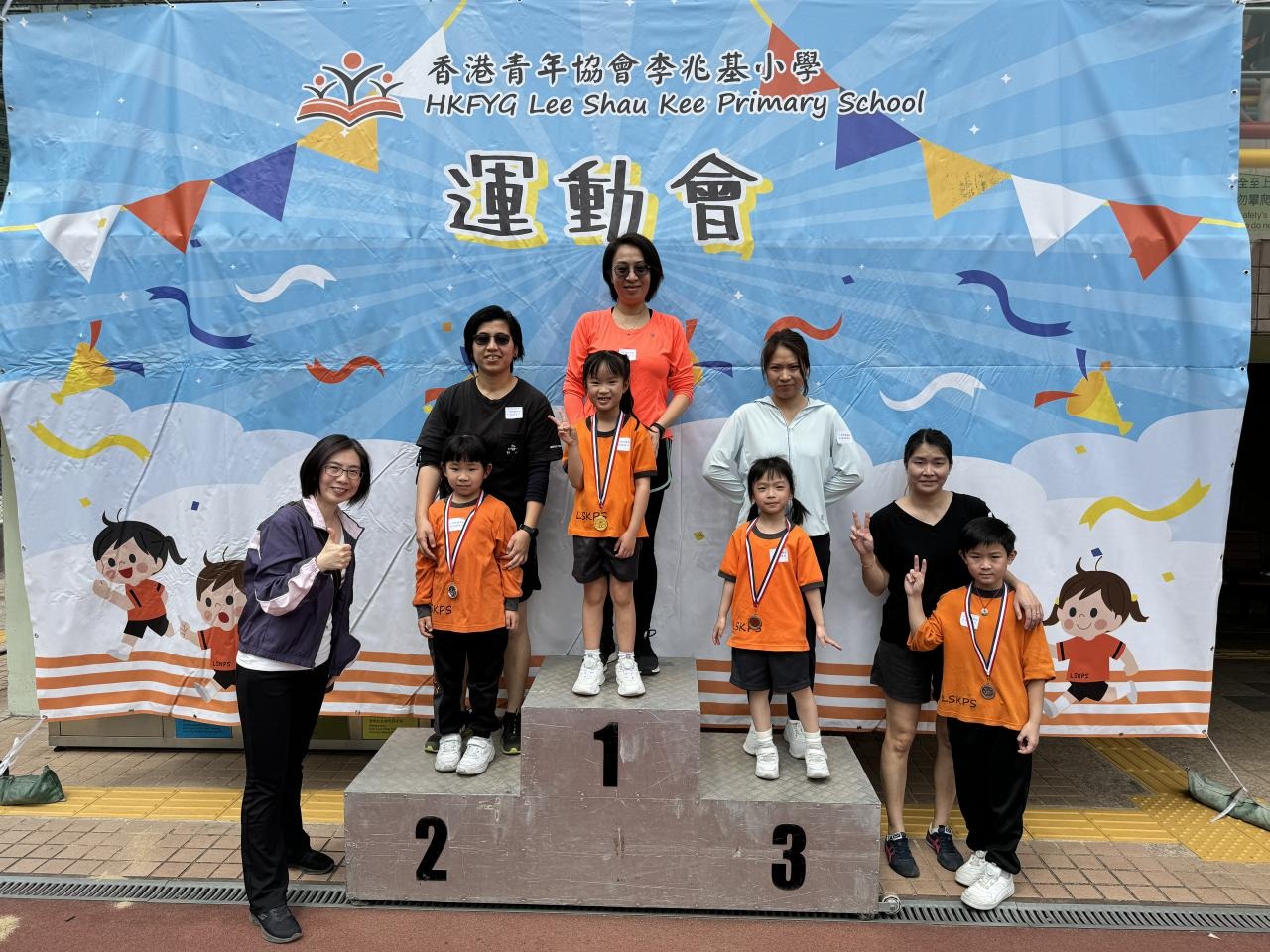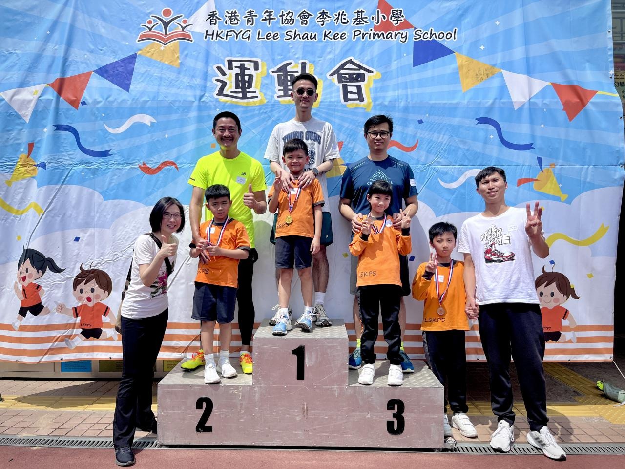 各班同學在看台上落力的打氣,令場外場內都充滿團結的氣氛﹗今次運動會的成功有賴不同單位的協助,包括本校的家長義工,