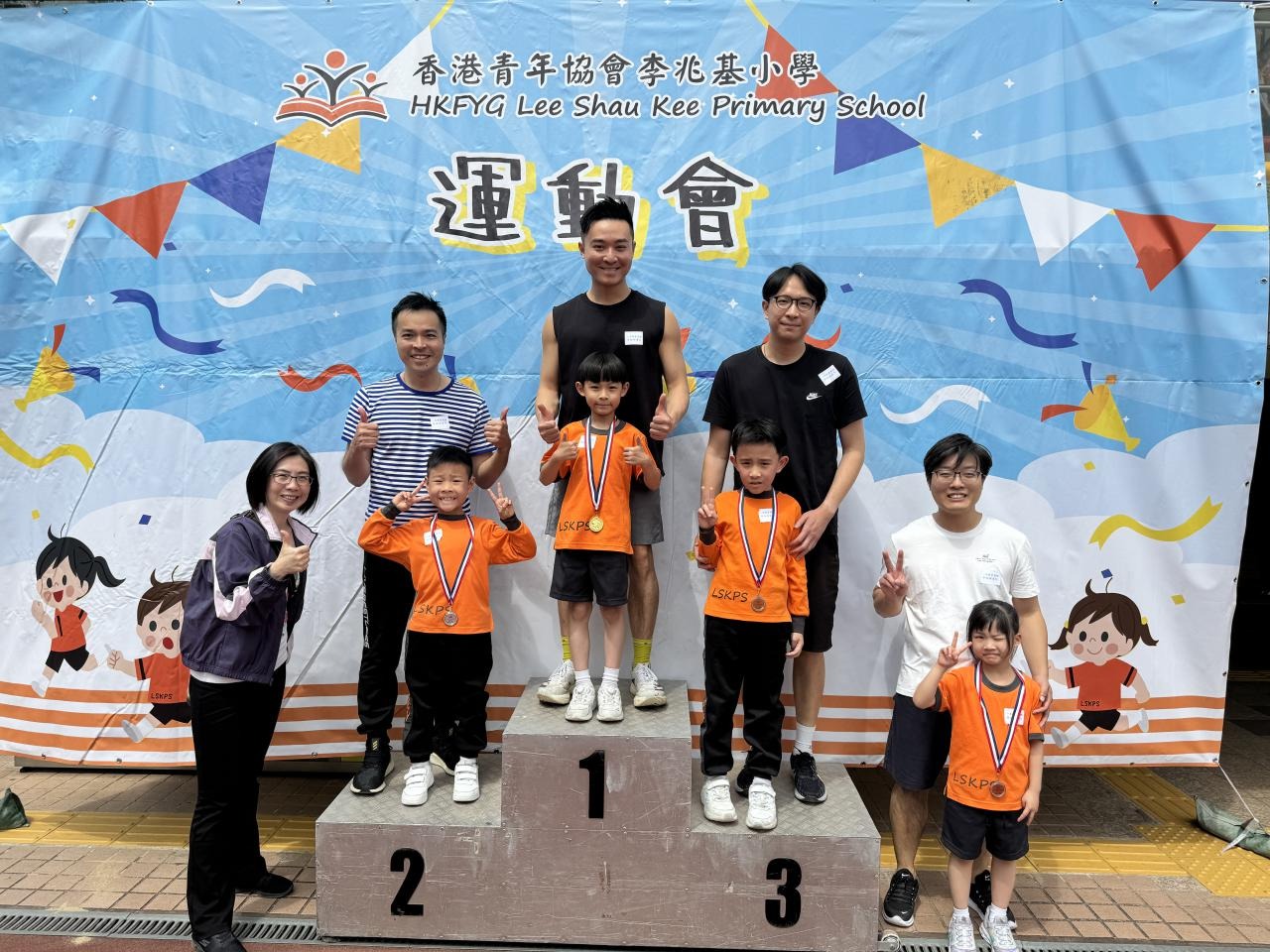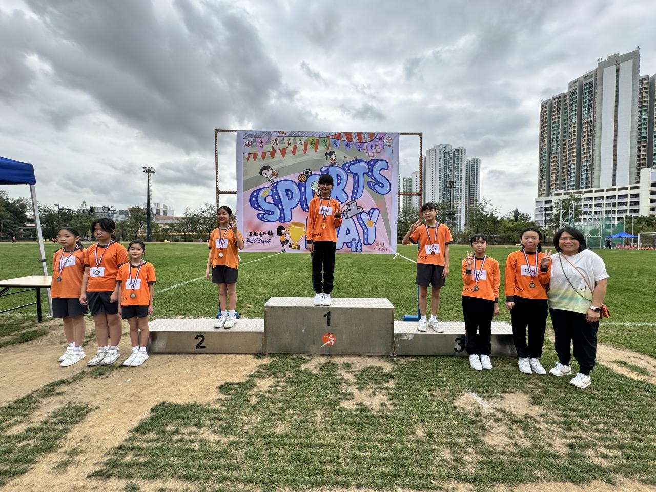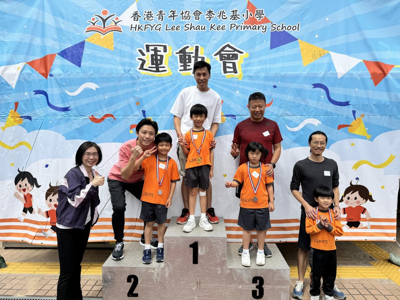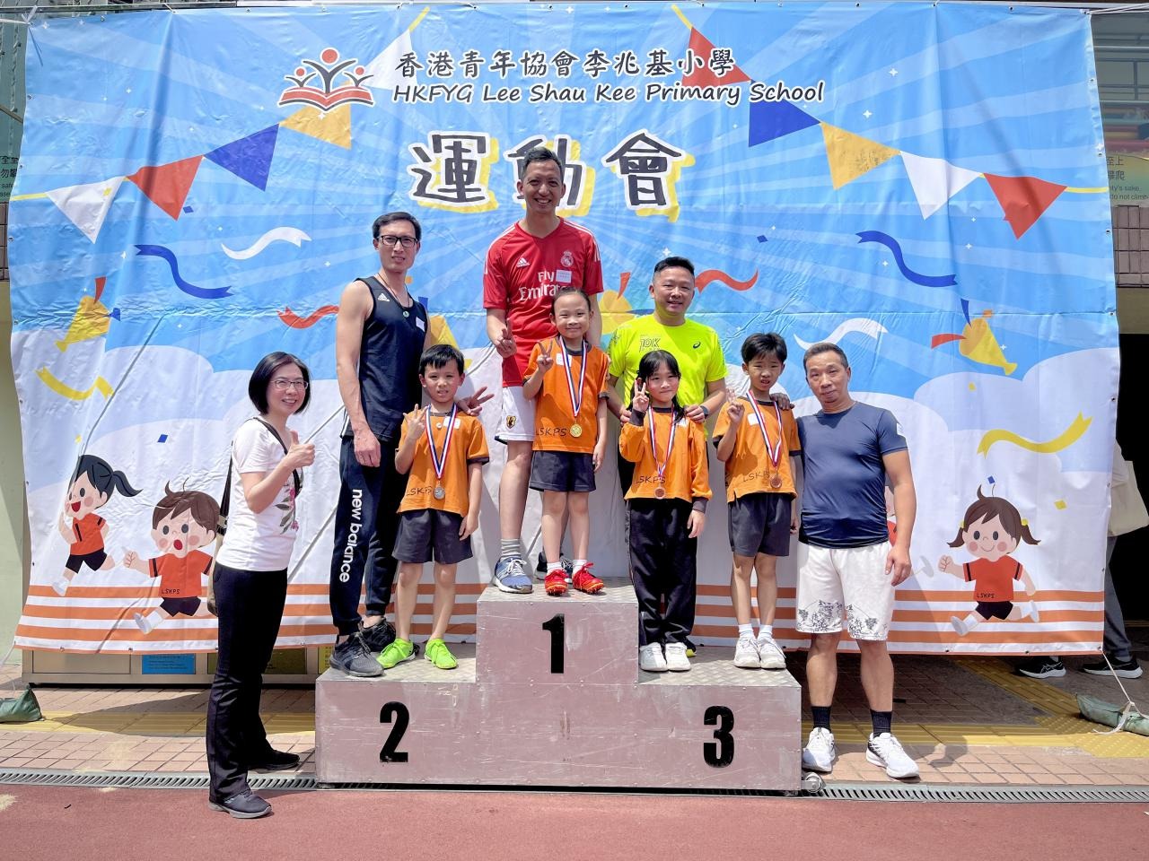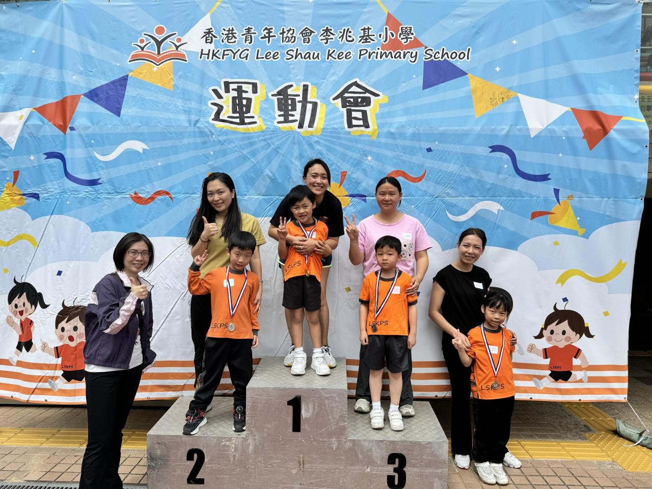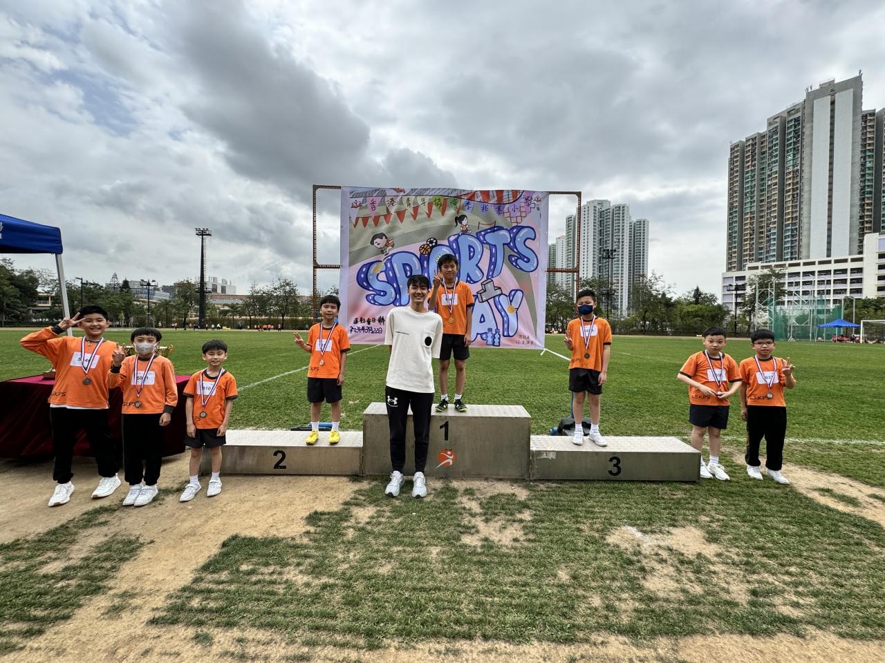 各班同學在看台上落力的打氣,令場外場內都充滿團結的氣氛﹗今次運動會的成功有賴不同單位的協助,包括本校的家長義工,
