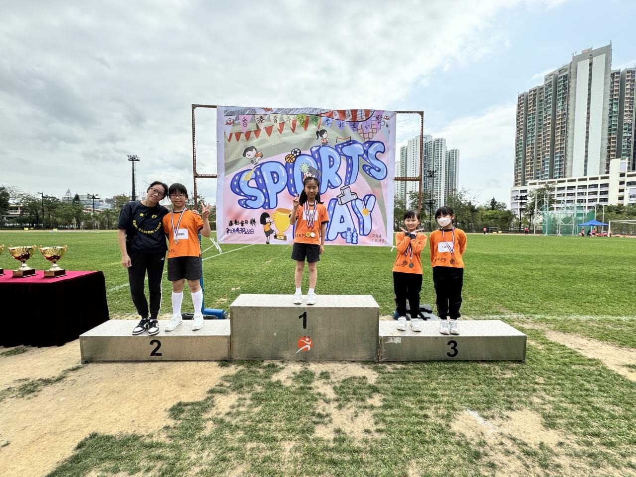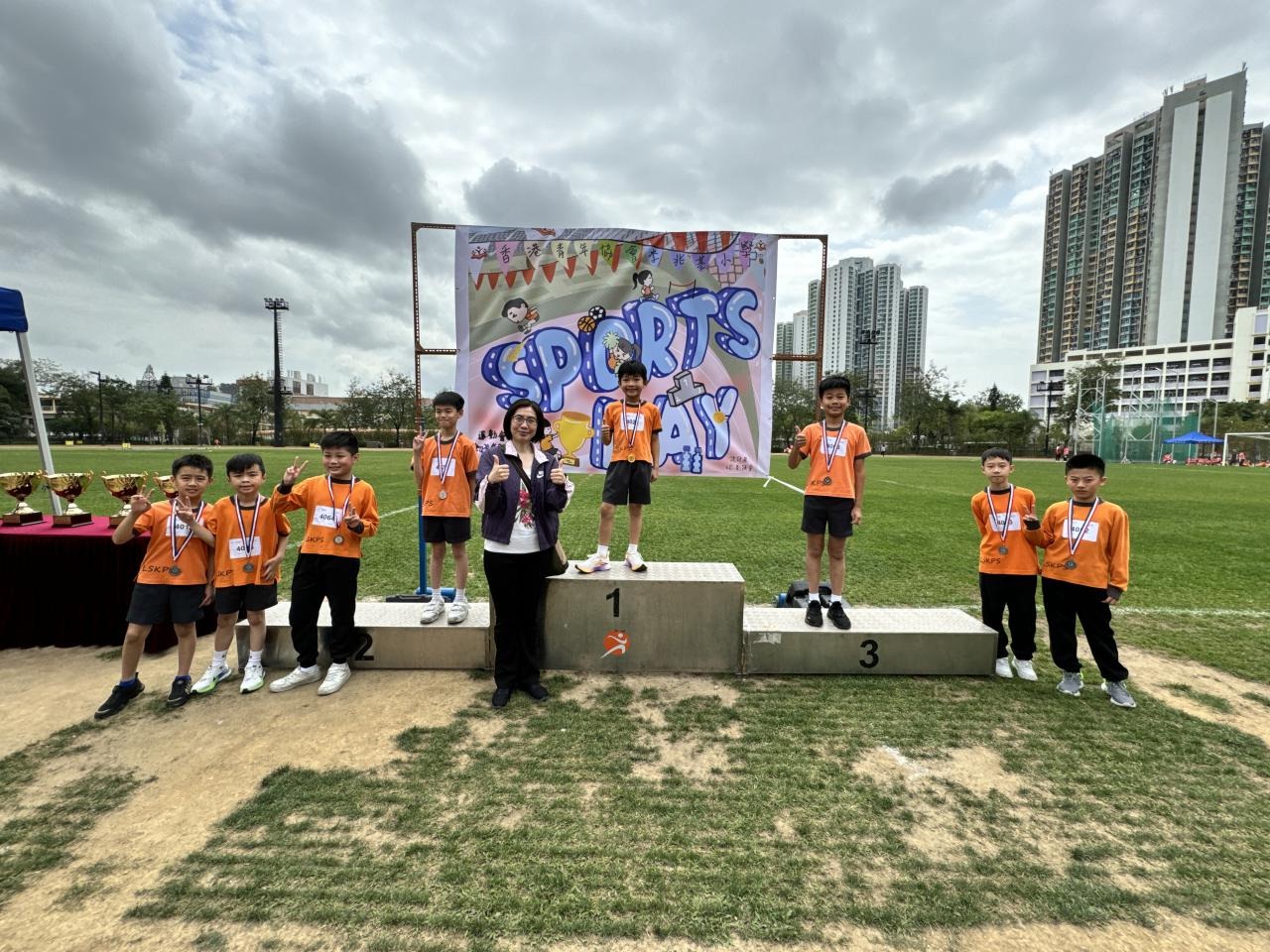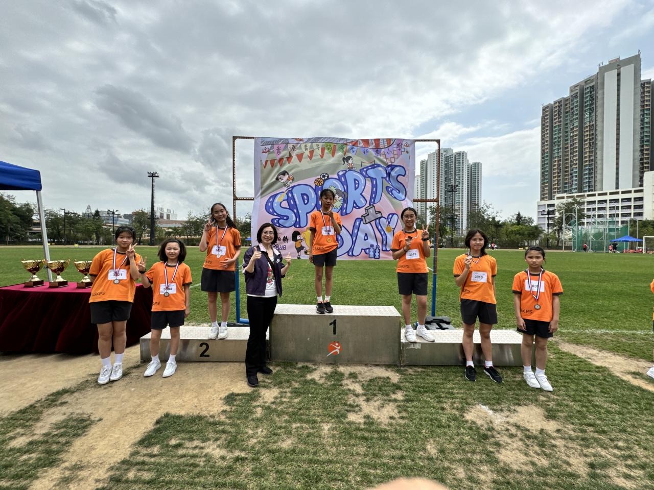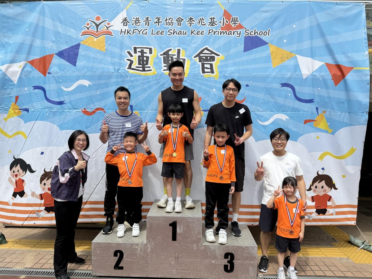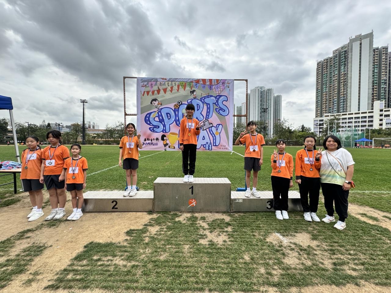 各班同學在看台上落力的打氣,令場外場內都充滿團結的氣氛﹗今次運動會的成功有賴不同單位的協助,包括本校的家長義工,