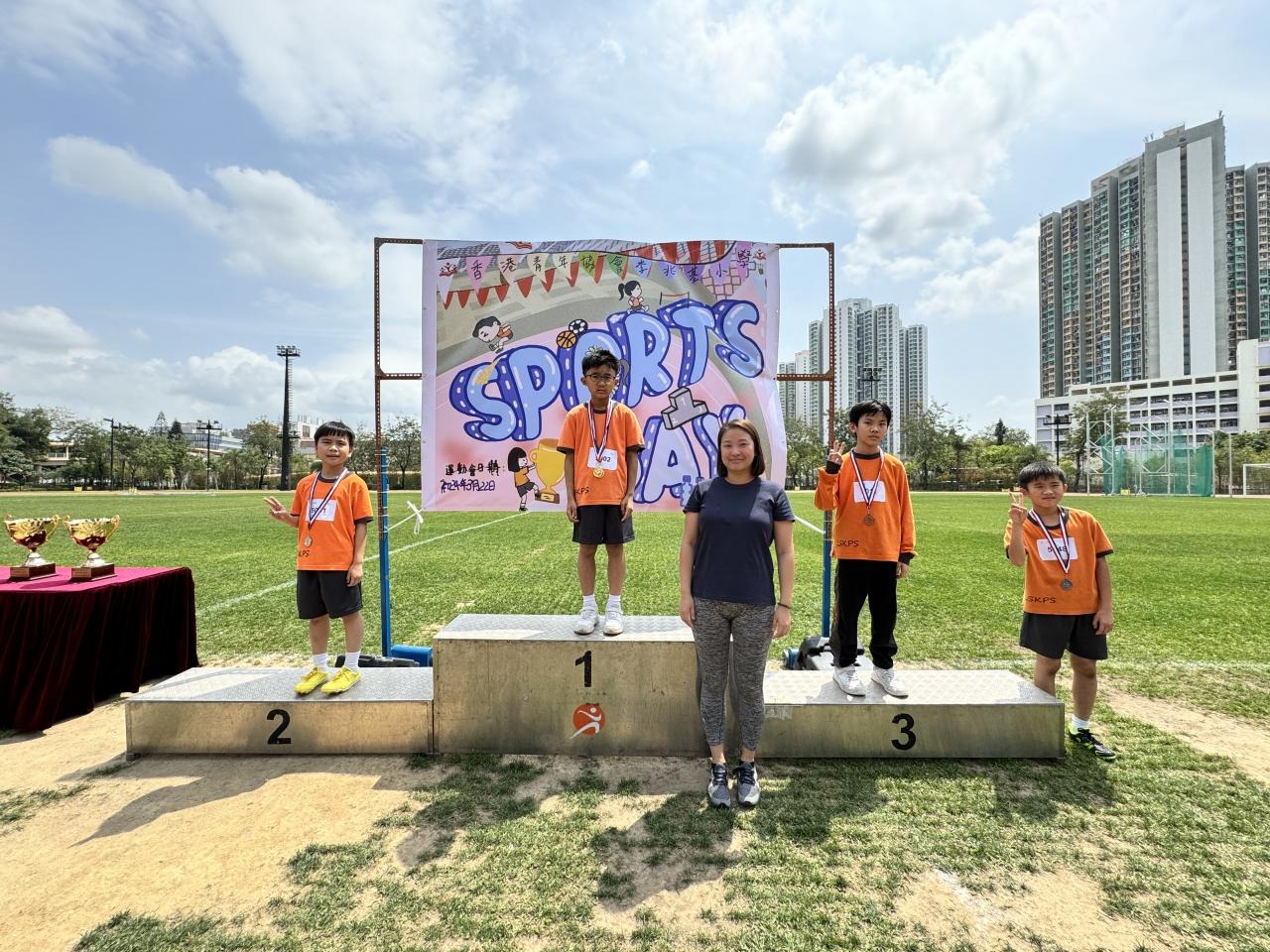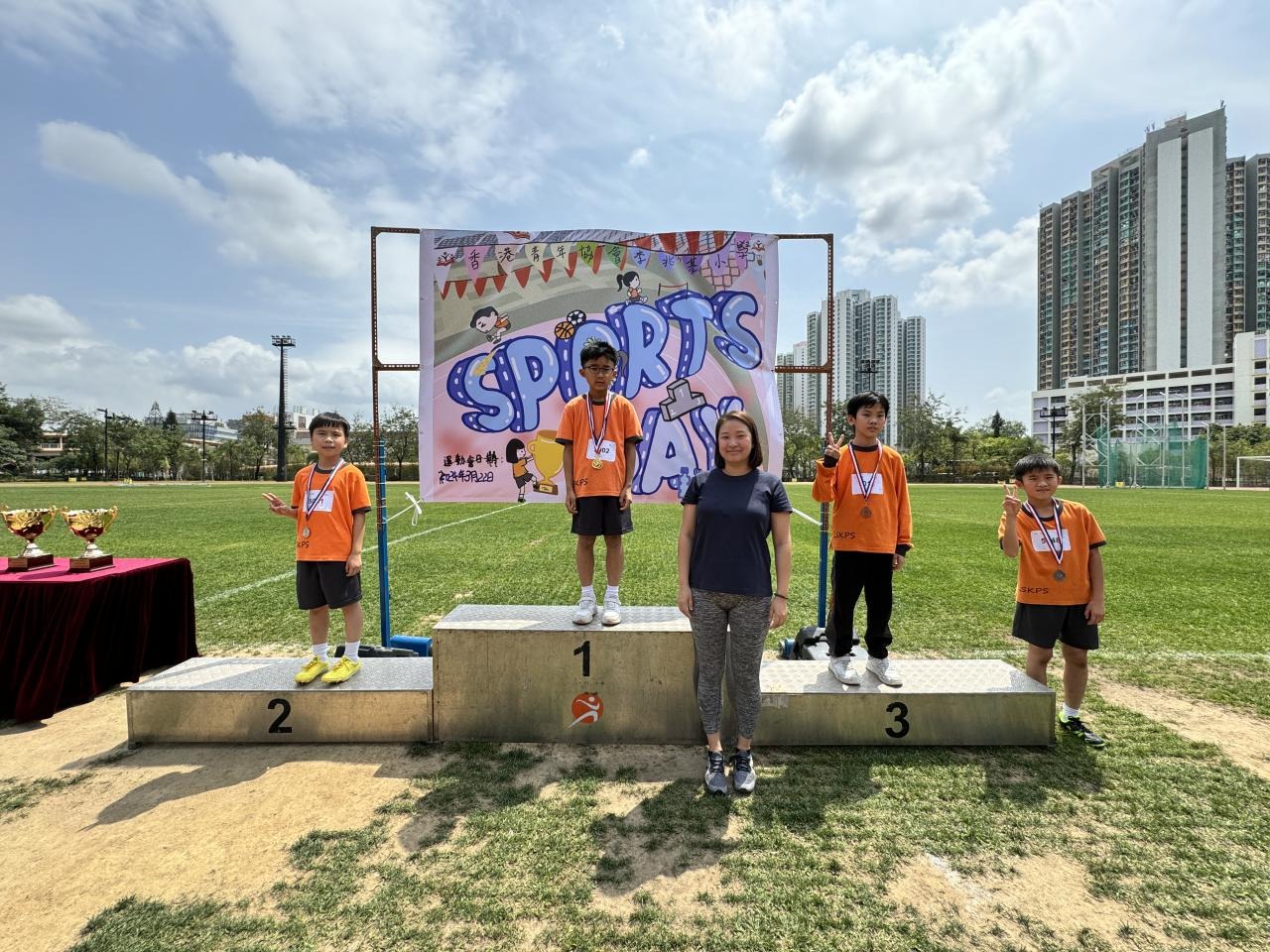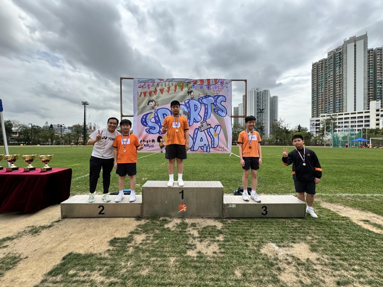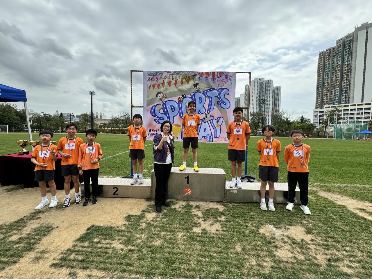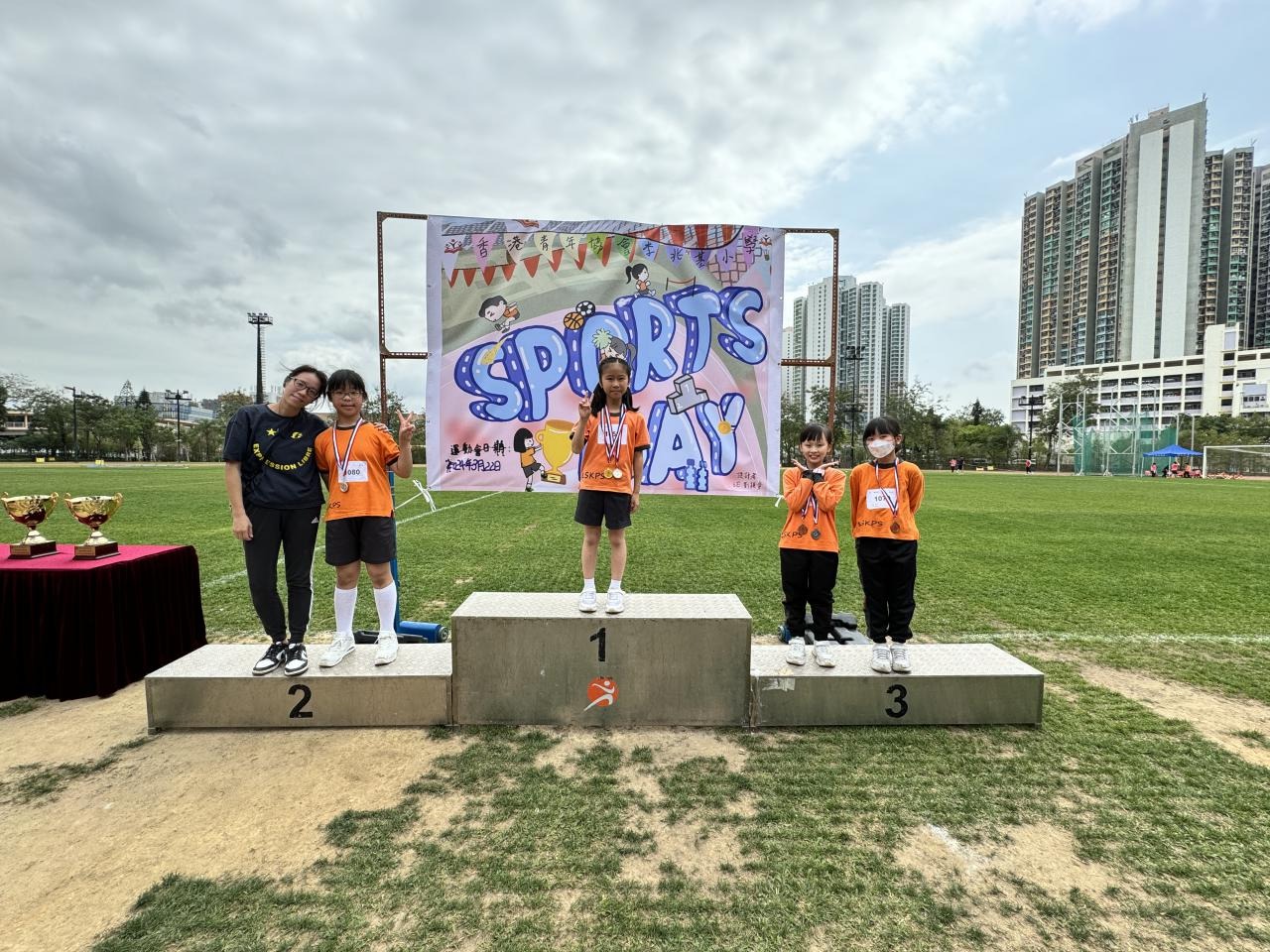 各班同學在看台上落力的打氣,令場外場內都充滿團結的氣氛﹗今次運動會的成功有賴不同單位的協助,包括本校的家長義工,