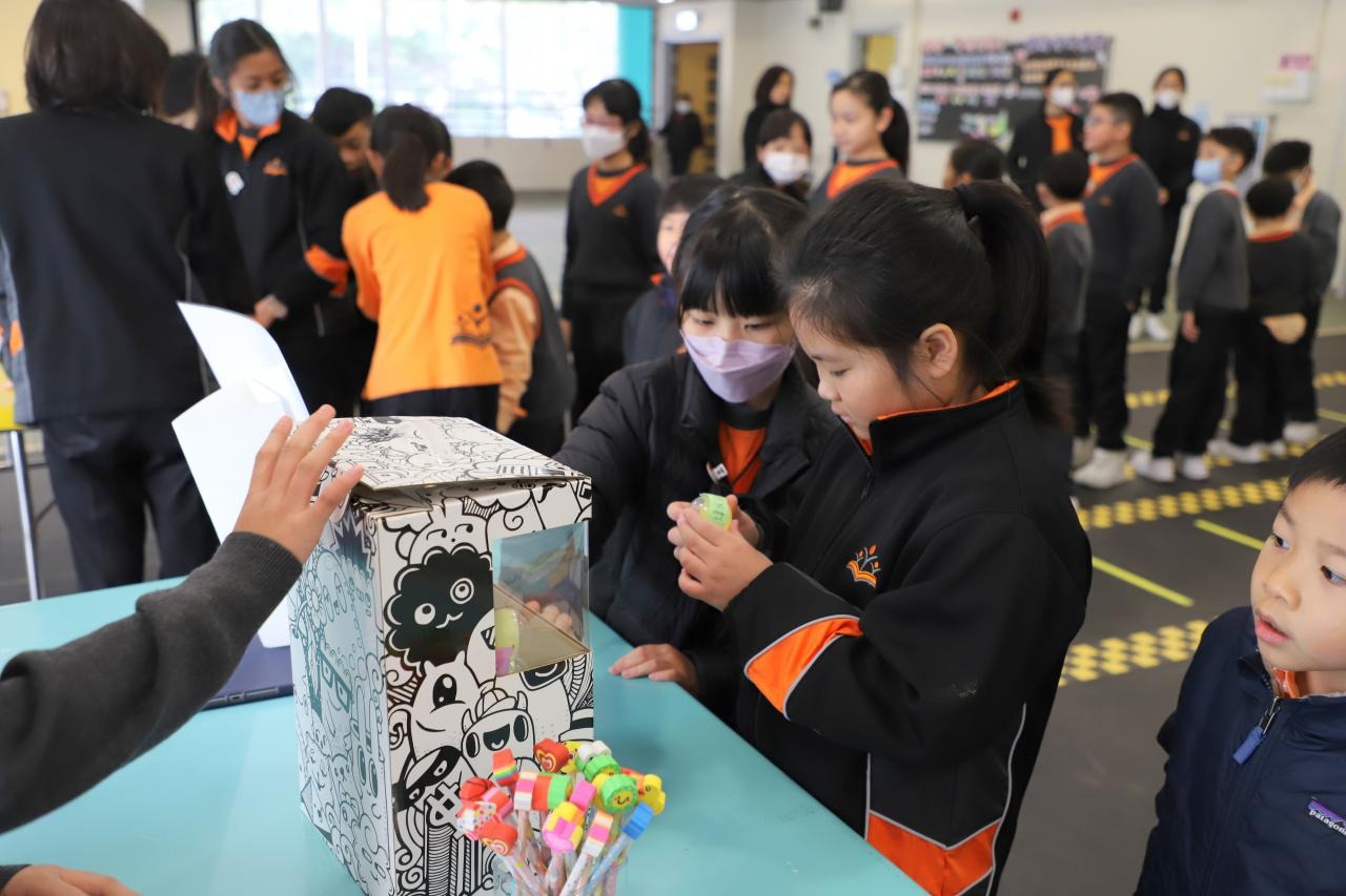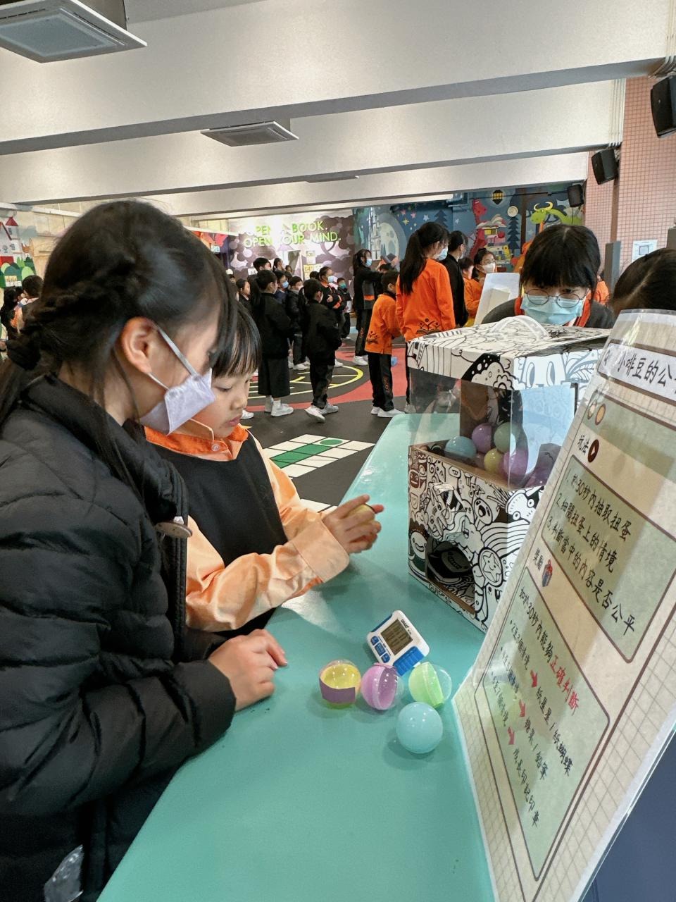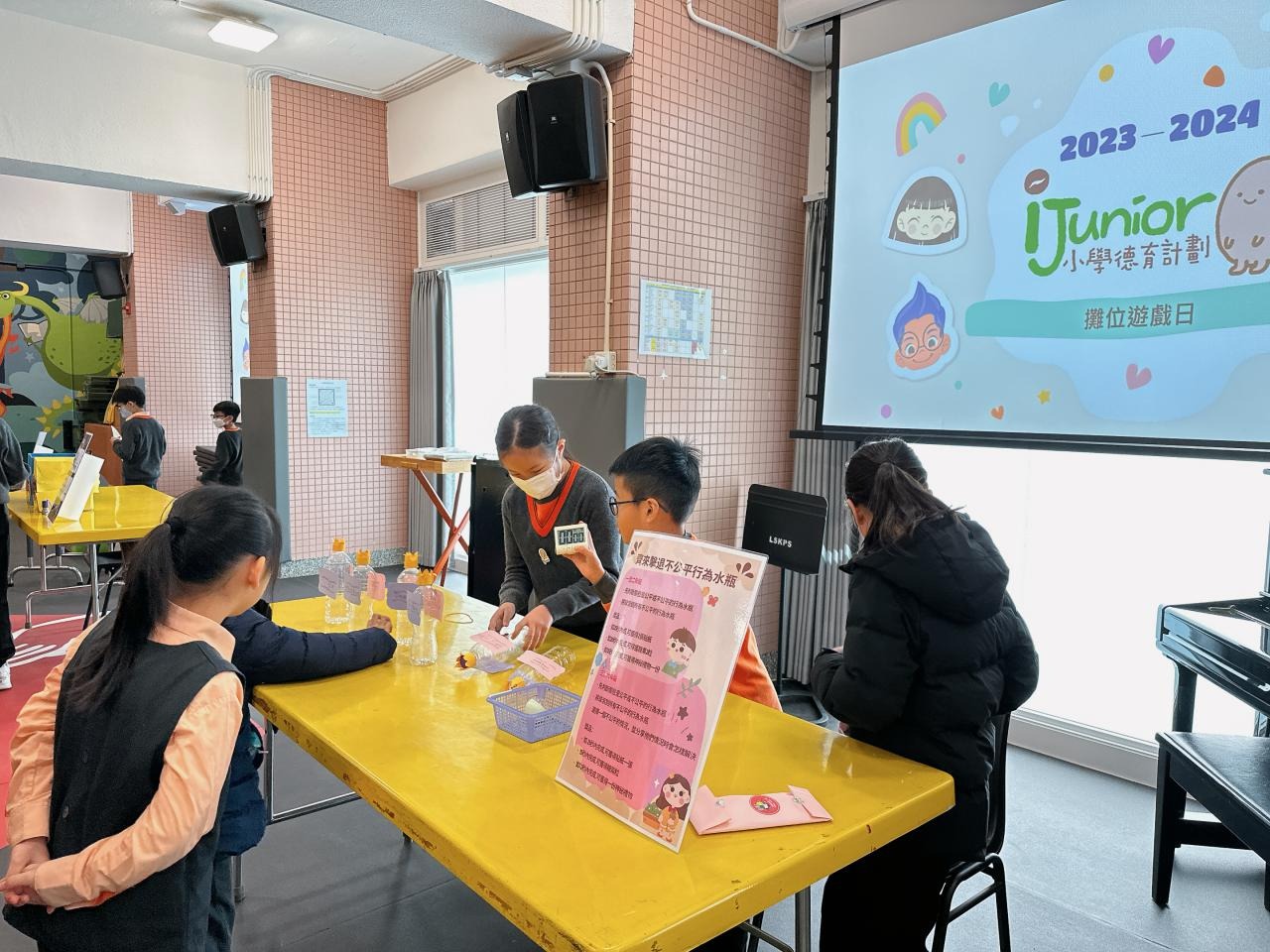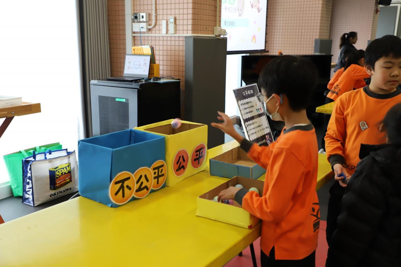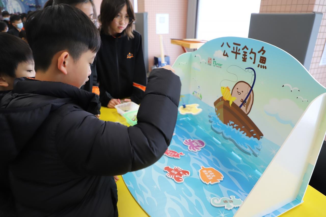 2024-01-26 本年度共招募了15位德育大使,協助於校內籌備攤位遊戲,讓校內其他同學一起透過富趣味性的方式認識不同的正向價值觀。 一眾德育大使除了於培訓中進行團隊訓練外,亦用心設計、測試及改良攤位遊戲,務求參與的同學在玩樂後亦有所得著。 攤位遊戲當日,廉政公署的「小啡豆」亦到校與同學見面和拍照。 而同學們都很投入參與由德育大使所設計的遊戲呢! 攤位一:公平投球 攤位二:齊來擊退不公平行為水瓶 攤位三:公平足球仔 攤位四:小啡豆的公平扭蛋 攤位五:公平釣魚 同學們都滿載而歸呢! 學校活動