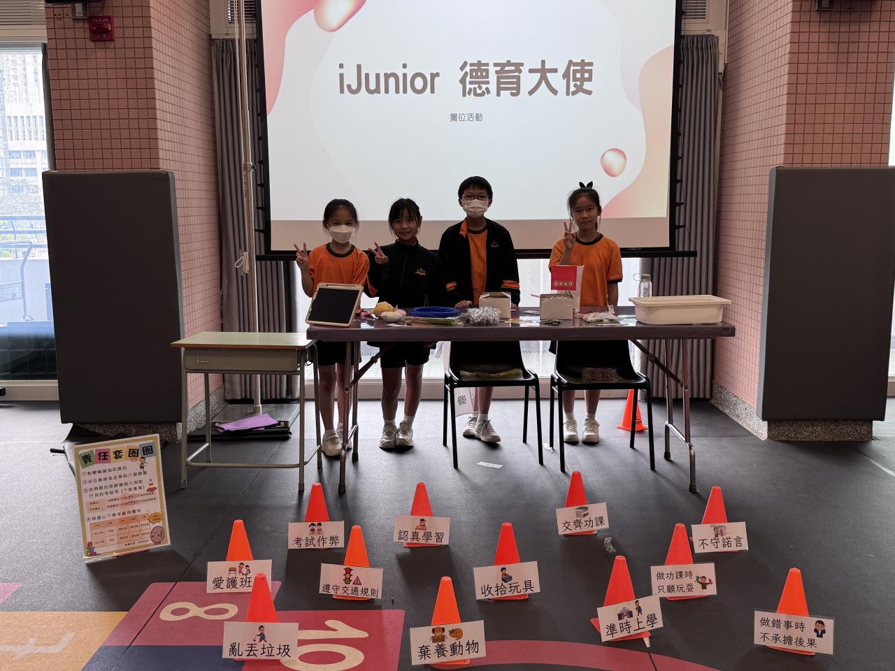 本學年以「責任」為主題,12位經過培訓的iJunior正向大使攜手打造了一場充滿意義的攤位遊戲日!從策劃、設計遊戲到現場帶領,小大使們發揮團隊精神,將抽象的價值觀轉化成有趣的互動挑戰——「責任滾滾球」、「責任套圈圈」、「責任投籃」及「基基扭蛋機」。