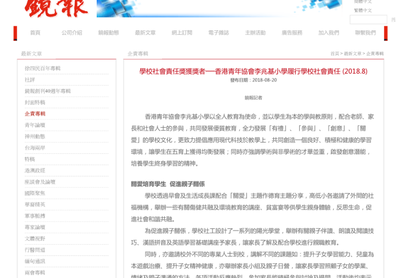 知識雜誌報導:(香港青年協會李兆基小學)享受學習愉快成長