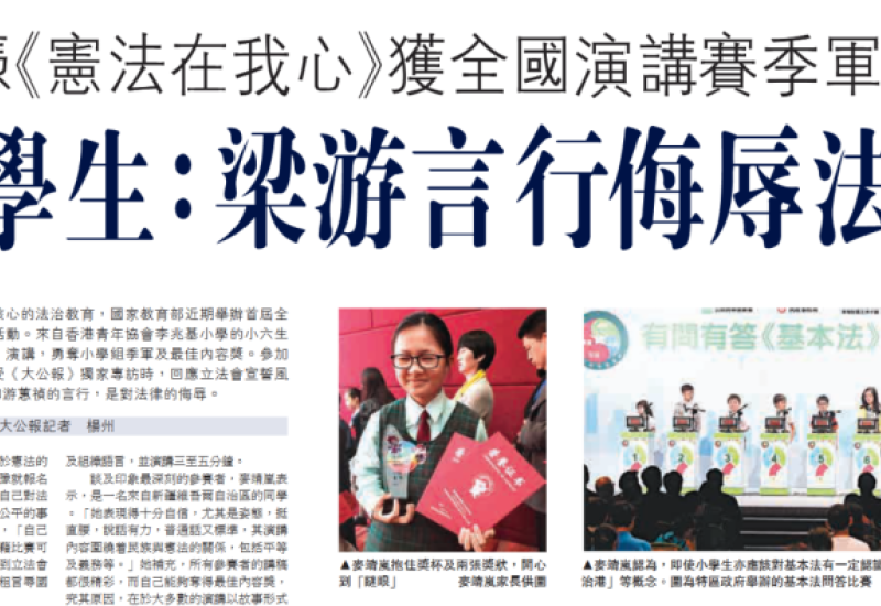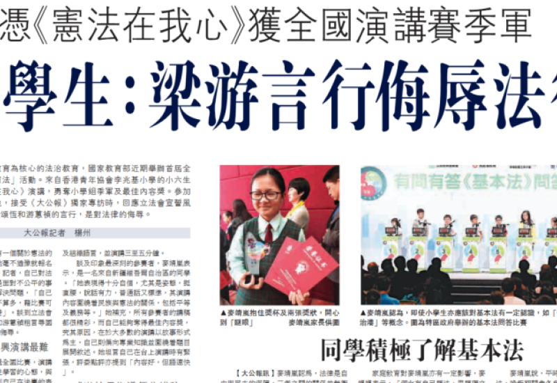 大公報: 憑《憲法在我心》獲全國演講賽季軍