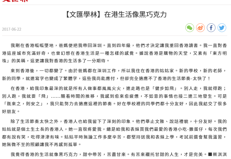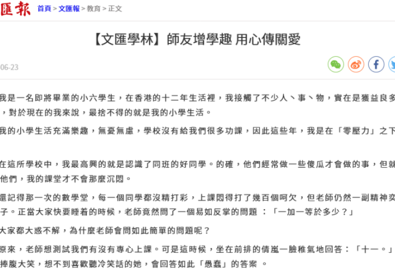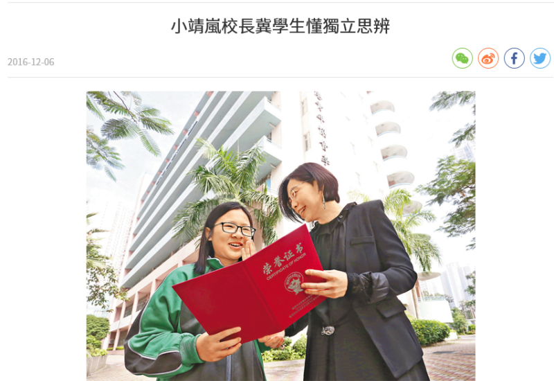 文匯報: 小靖嵐校長冀學生懂獨立思辨