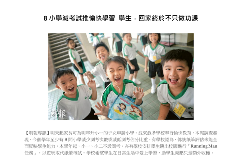 明報: 8小學減考試推愉快學習 (學生﹕回家終於不只做功課)