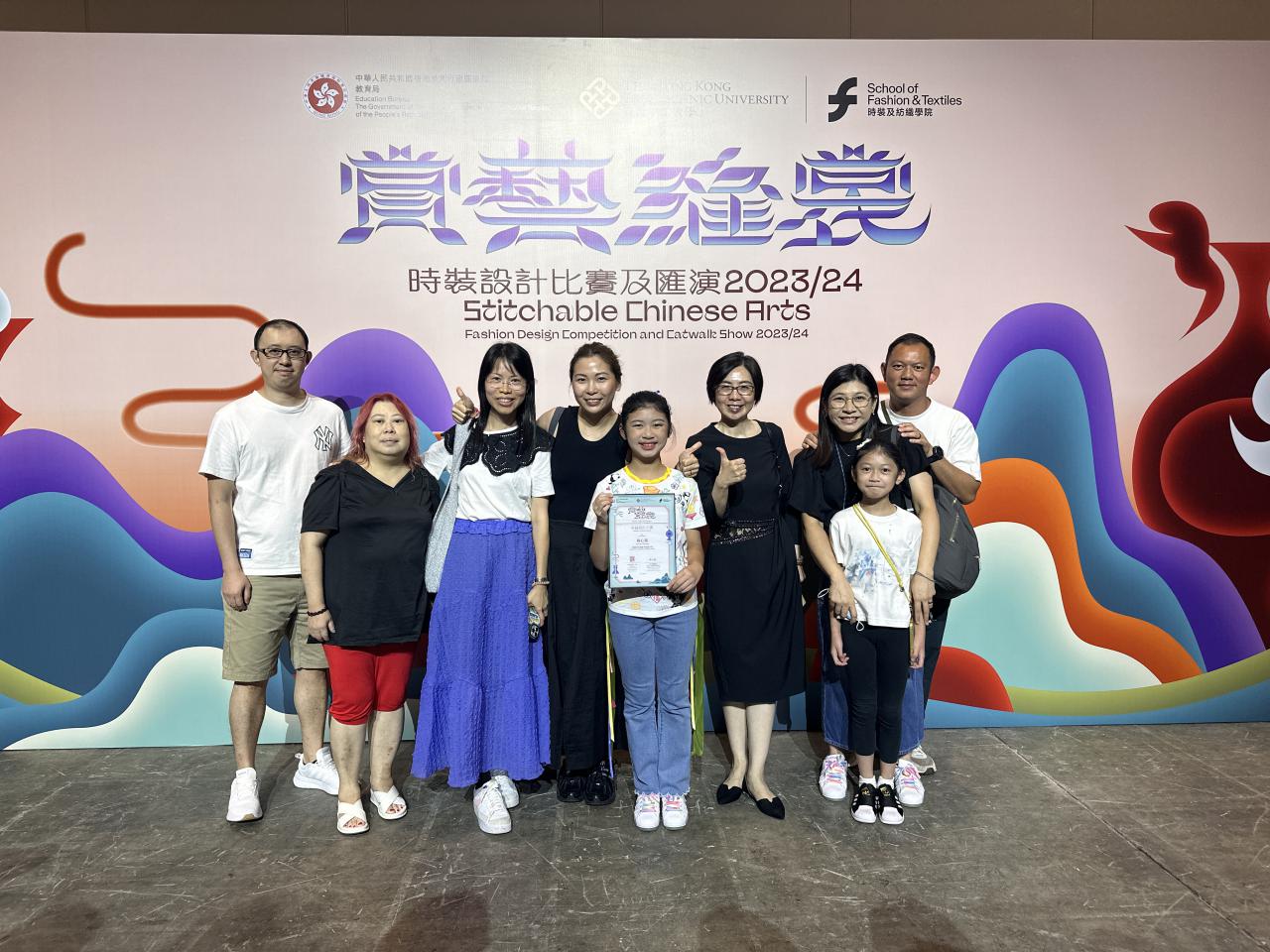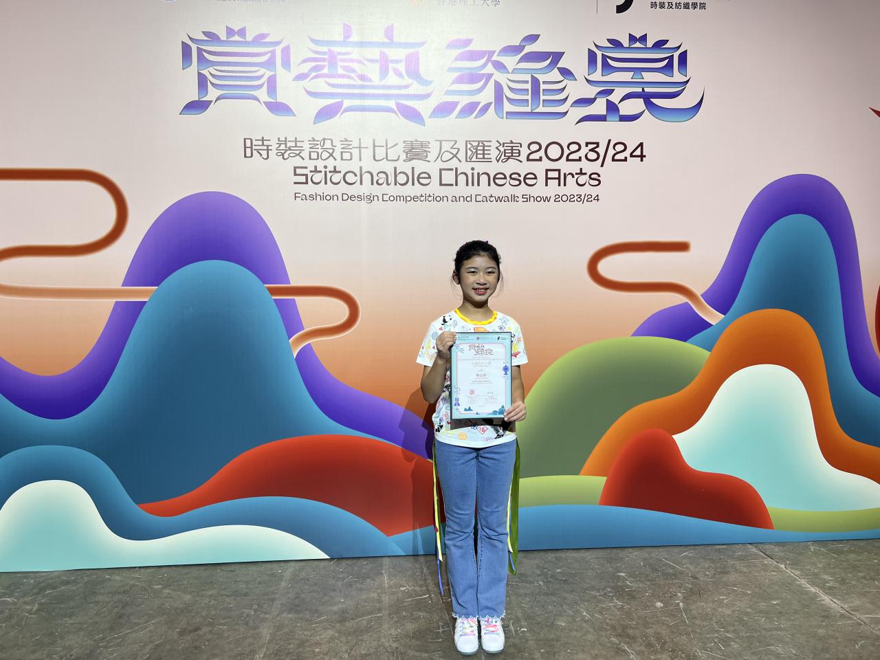 教育局課程發展處(藝術教育組)與香港理工大學首次攜手合辦「賞藝縫裳」時裝設計比賽及匯演2023/2024。這個比賽反應熱烈,共收到來自120多間中小學的1,500多件作品。經過嚴格篩選,6B楊心蕾同學(畢業生)獲得卓越設計大獎,在香港理工大學時裝及紡織學院師生的悉心指導及協助下,製作成精緻的服裝,已於9月29日在香港會議展覽中心展覽廳1D進行時裝匯演,詳情可按以下連結。