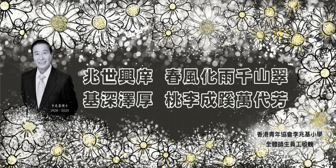 這幅集體創作的點畫記載了我們全體師生員工對李兆基博士的懷念,
