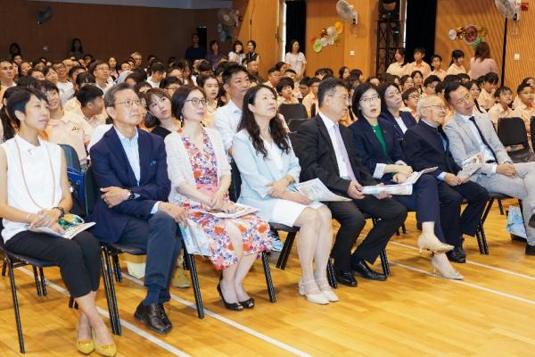 本校邀得立法會議員、嶺南大學協理副校長暨大學發展及公共事務處處長劉智鵬教授擔任主禮嘉賓,法團校董會主席呂慧蓮女士、校董會成員及家長教師會主席共同出席。典禮上,畢業生從嘉賓手中接過證書,並向師長及嘉賓贈送25周年紀念書簽及親手創作的畢業帽,表達真摯謝意。全場齊唱畢業讚歌的溫馨場景,將典禮推向高潮。