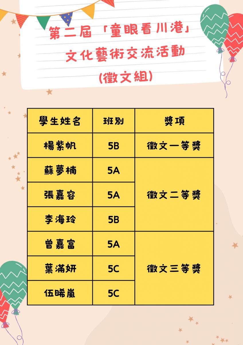 當中包括徵文比賽及繪畫比賽,在眾多參賽作品中,本校共有16位同學脫穎而出榮獲一等獎至三等獎。
