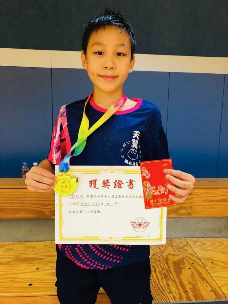本校 6B 郭縉皓 勇奪 冠軍 單打9至11歲