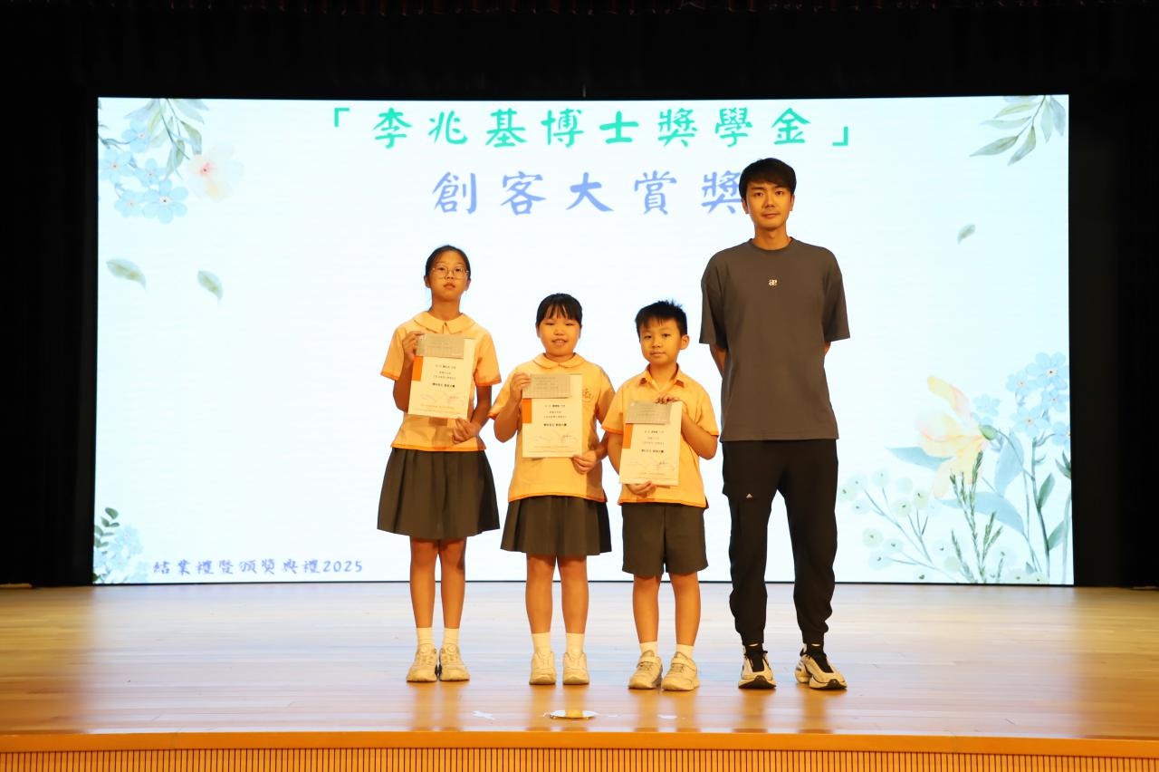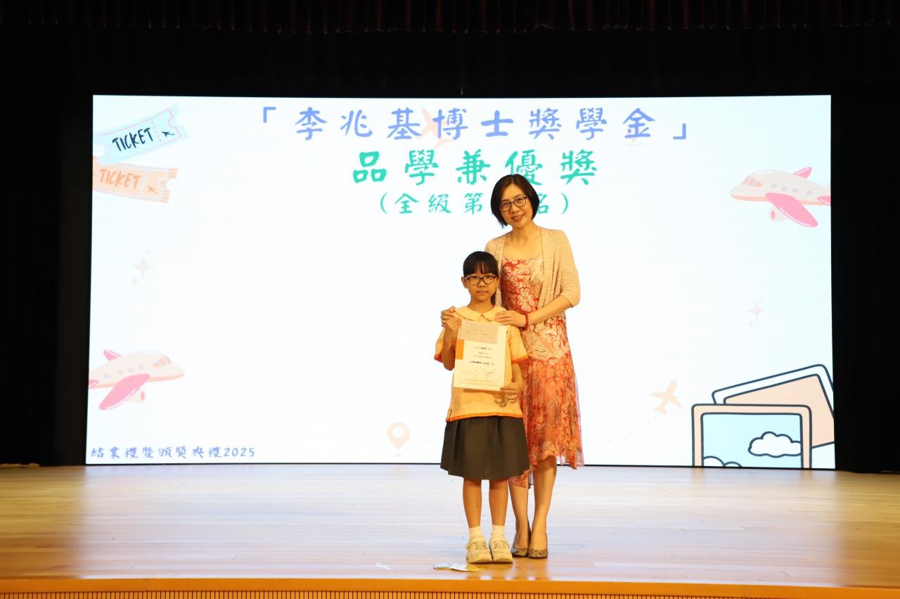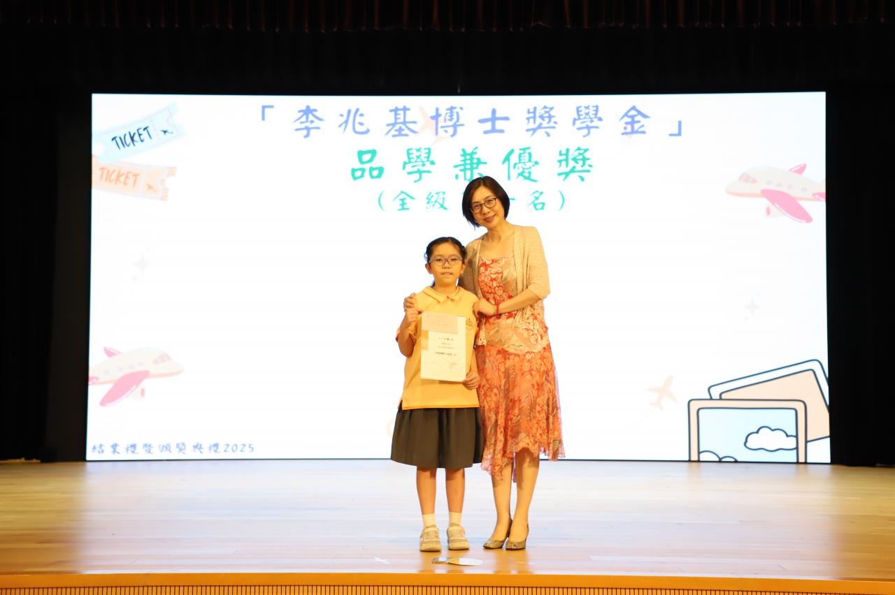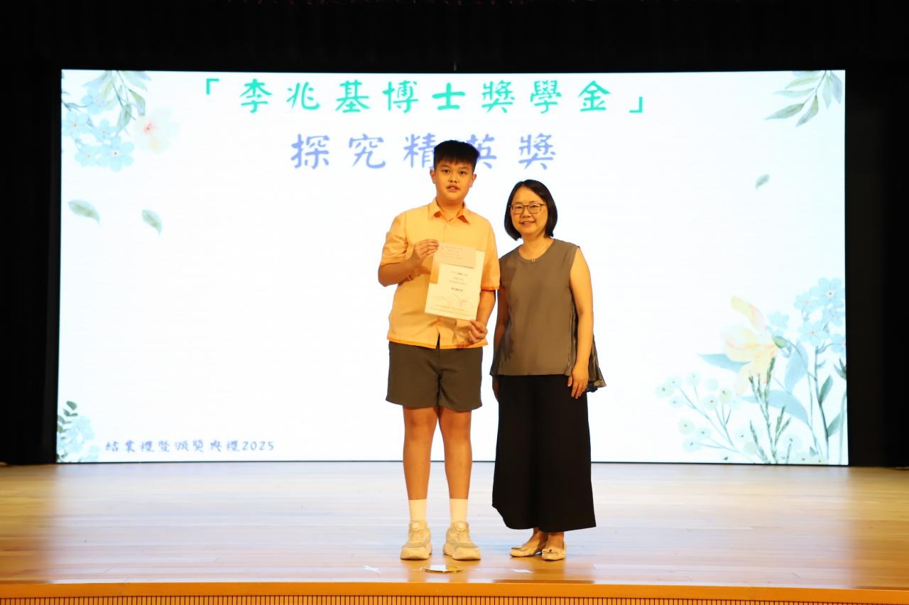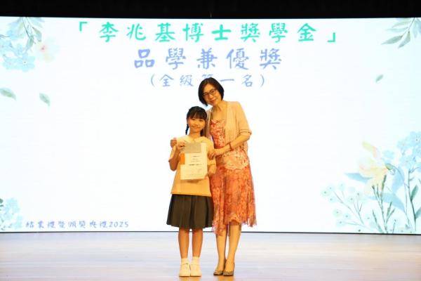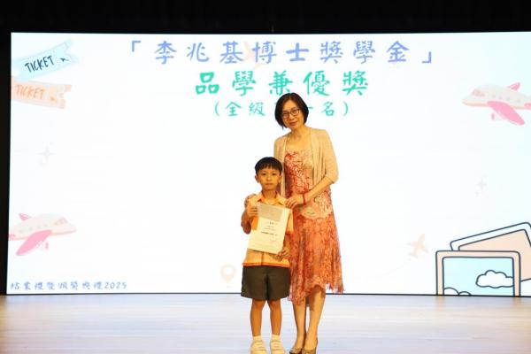 典禮的第二個環節是頒獎禮。本校有幸得到「李兆基博士基金」的鼎力贊助,設立了「李兆基博士獎學金」,該獎學金將持續十年,旨在表彰在學業、體藝、品德等多方面表現卓越的學生,鼓勵他們不斷追求卓越,並為學業與人生注入新的動力。本學年,學生在學業上取得了豐碩的成果,同時積極參與了多項活動,包括海外交流、全港性的比賽、區際競賽,以及學術與運動類的各項比賽,充分展現了全面發展的風采。在禮堂內,共頒發了70餘項獎項,獎盃與獎狀不僅是對學生努力的肯定,更是他們成長的見證。