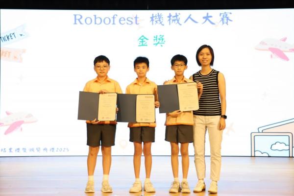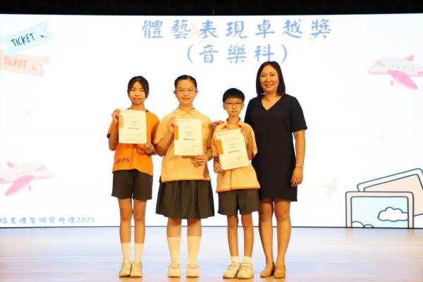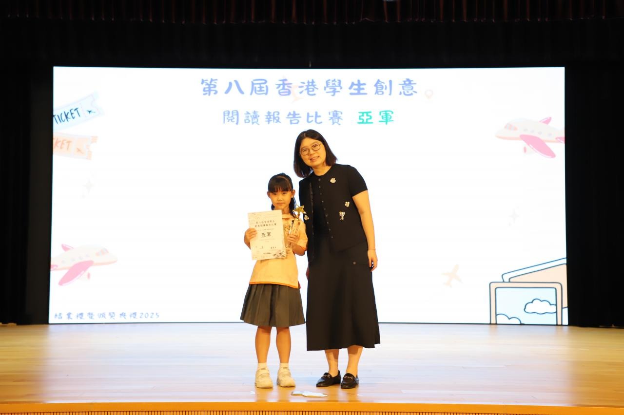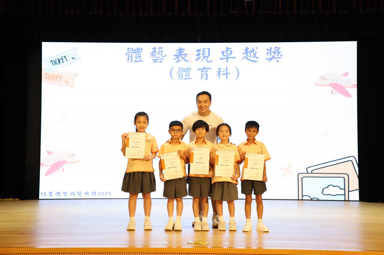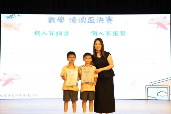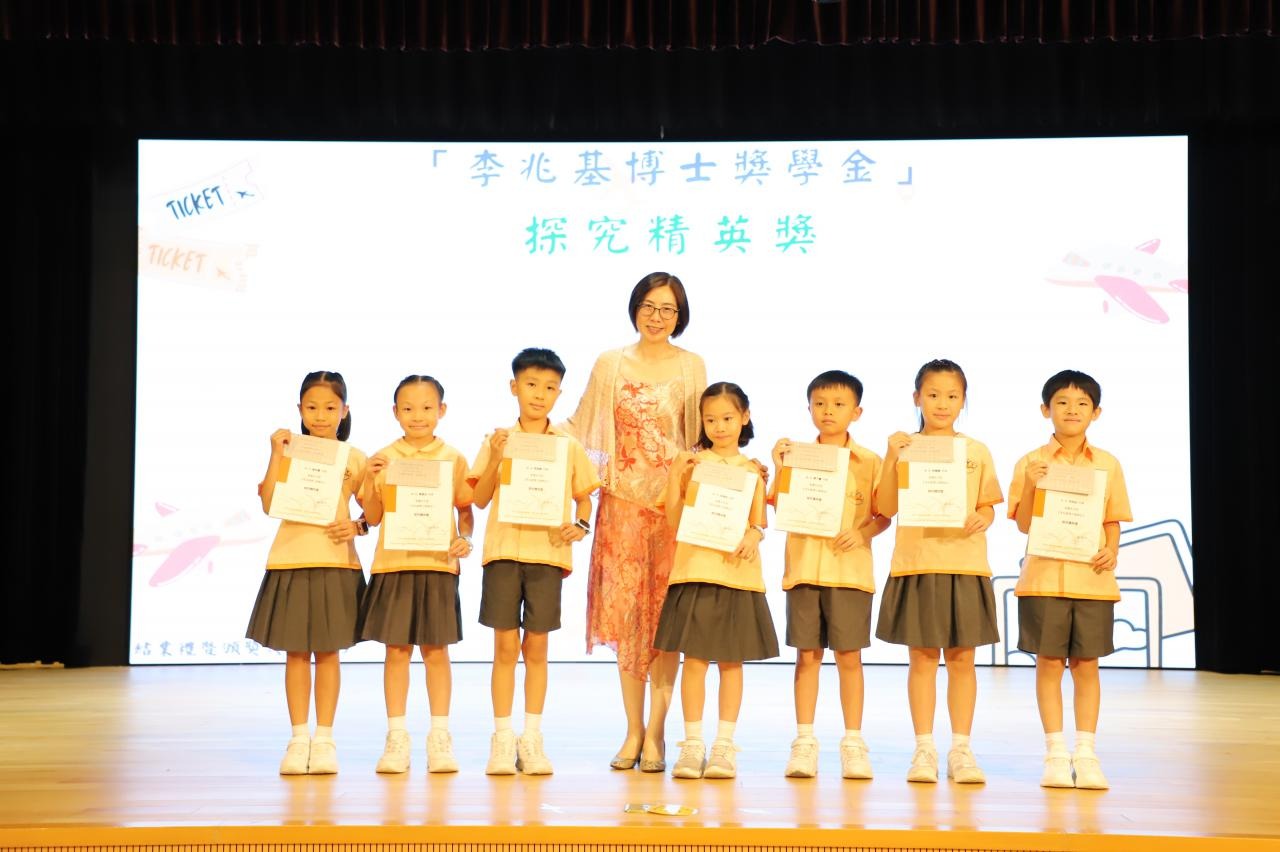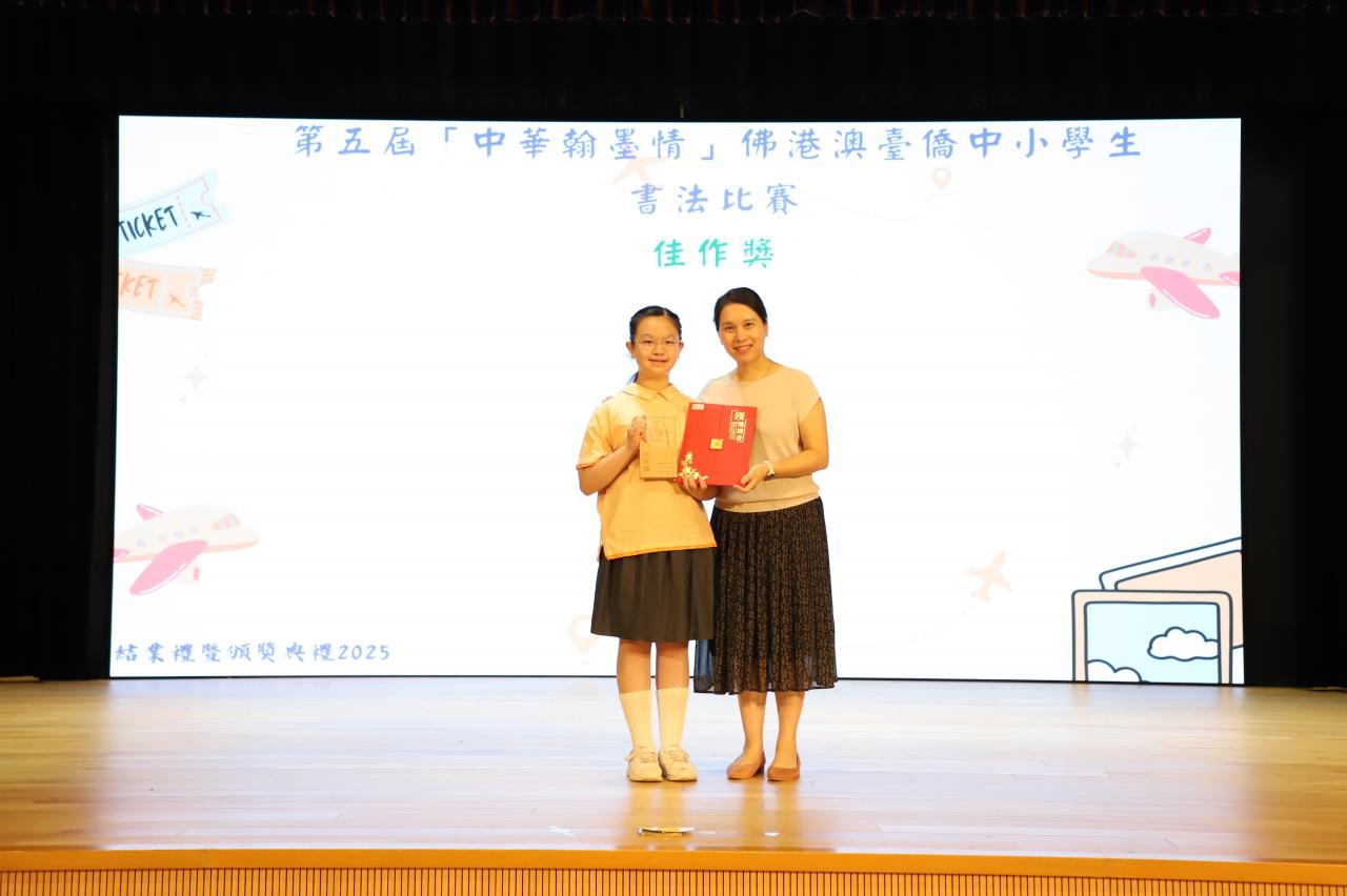 典禮的第二個環節是頒獎禮。本校有幸得到「李兆基博士基金」的鼎力贊助,設立了「李兆基博士獎學金」,該獎學金將持續十年,旨在表彰在學業、體藝、品德等多方面表現卓越的學生,鼓勵他們不斷追求卓越,並為學業與人生注入新的動力。本學年,學生在學業上取得了豐碩的成果,同時積極參與了多項活動,包括海外交流、全港性的比賽、區際競賽,以及學術與運動類的各項比賽,充分展現了全面發展的風采。在禮堂內,共頒發了70餘項獎項,獎盃與獎狀不僅是對學生努力的肯定,更是他們成長的見證。