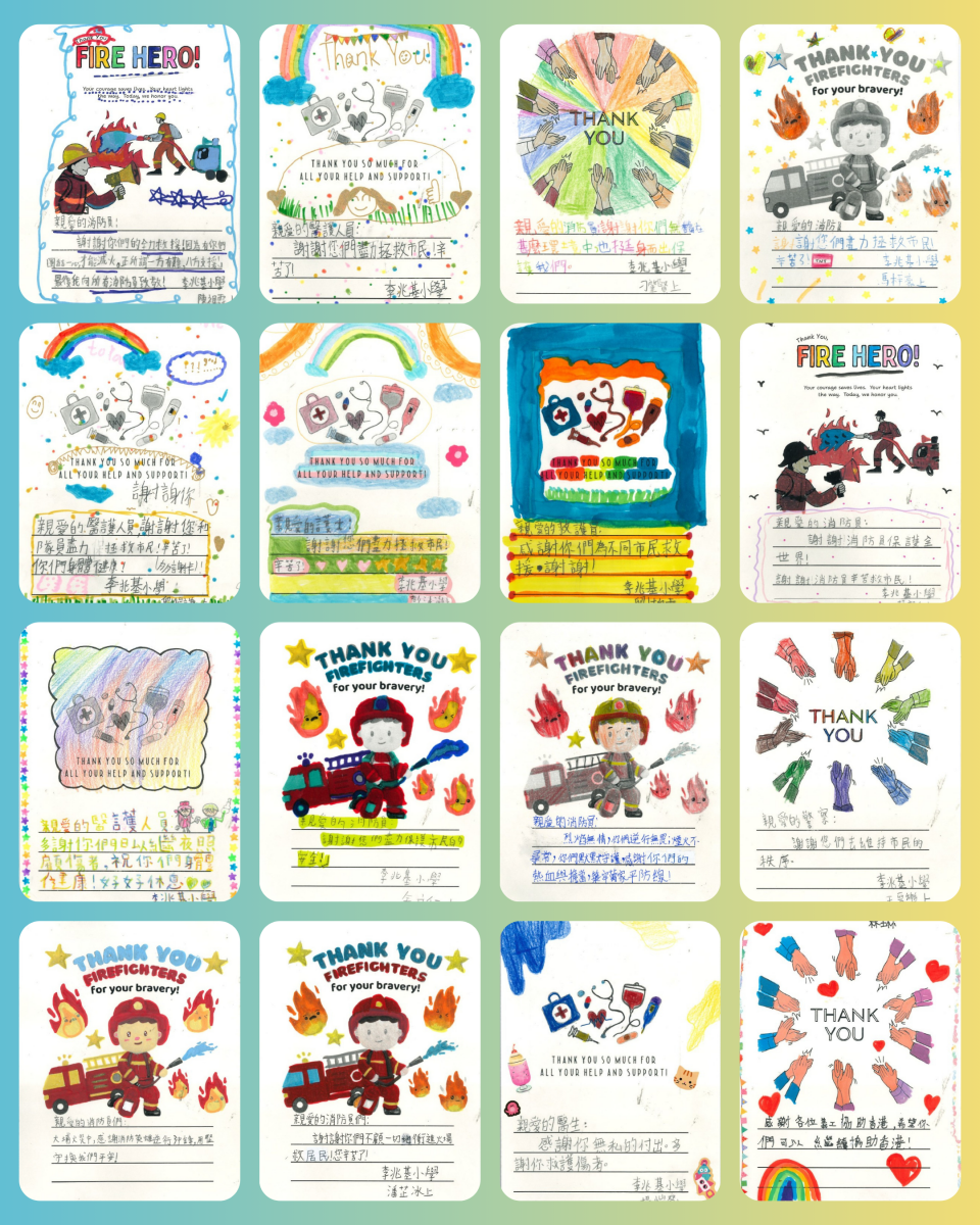 關於日前大埔的火災事故,我校師生謹此向受災市民致以深切慰問,同時對所有救援及協助人員表示衷心感謝。同學們自發以心意卡形式,書寫對受災家庭的關懷與祝福,藉此表達心意,並衷心期盼受災市民能早日走出陰霾,渡過難關。