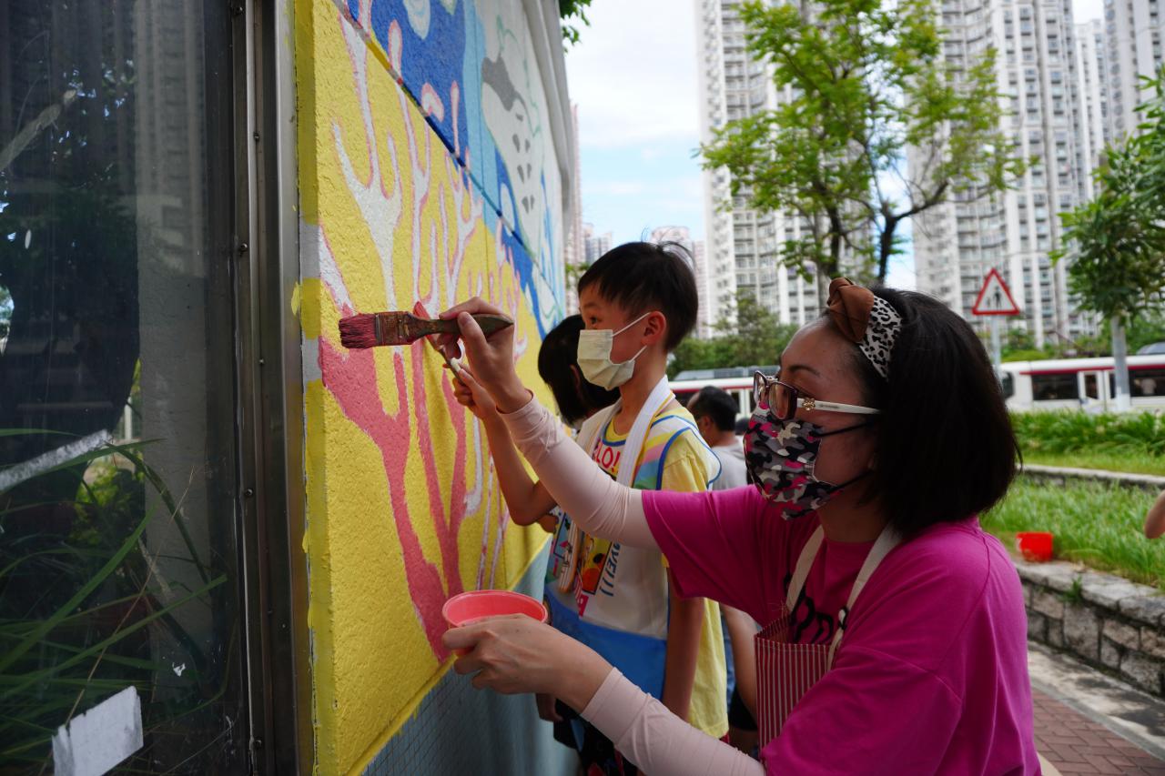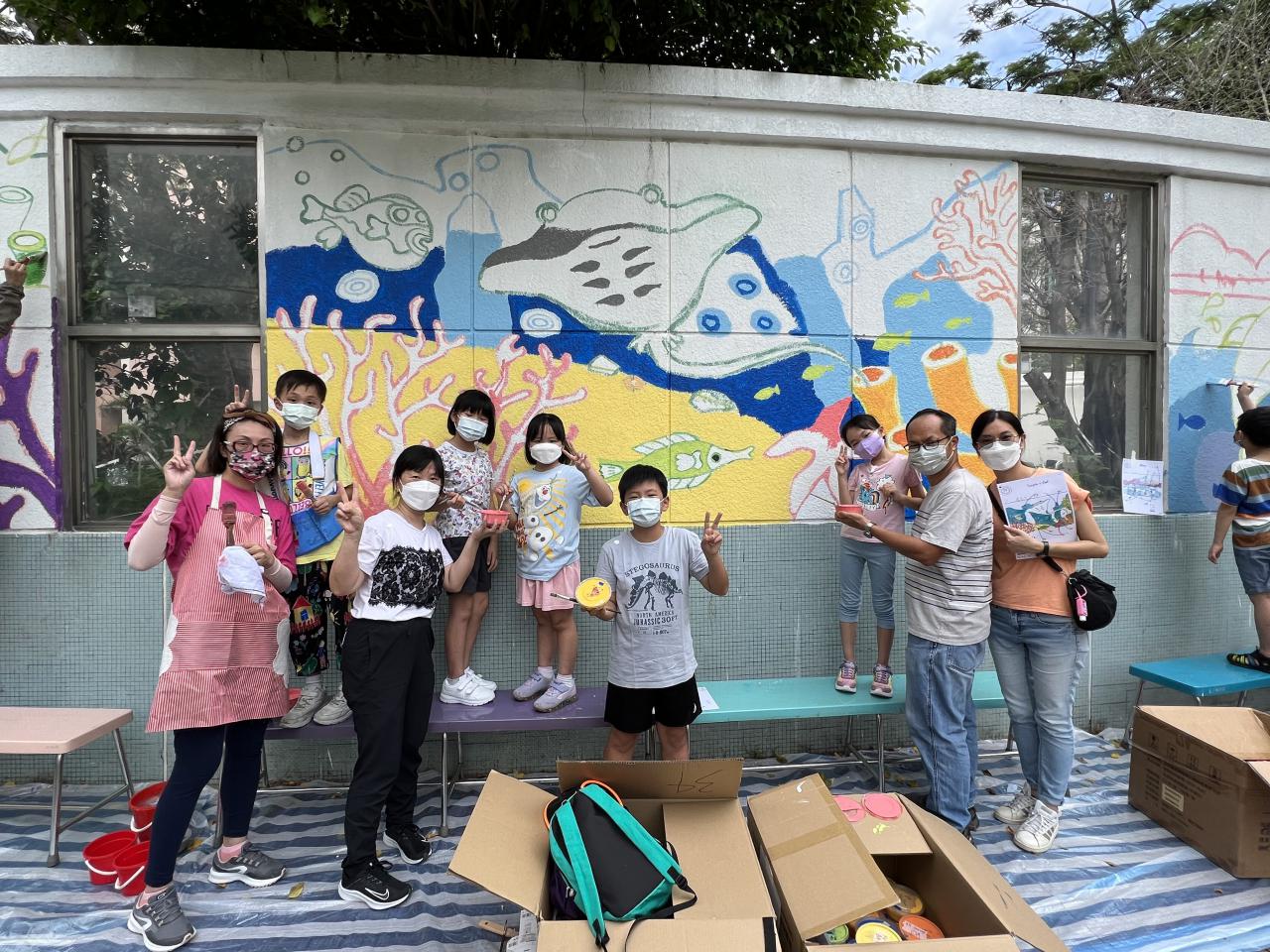 本校於7月9日及7月16日舉辦了「悠森出發•油出正能量」壁畫創作活動,由本校壁畫創作者朱莎女士(6B 張津銘家長)帶領下,本校家長、學生、家長教師會成員、校友會成員一起進行了這次既珍貴又難忘的體驗,把本校外牆的36塊牆壁,畫上由森林到海洋的大自然奇景,活靈活現的呈現出來。透過這次活動不但增加了本校家長及學生對學校的歸屬感,也為這社區增加了一個藝術欣賞分享點,更成為學生、家長、老師及大眾的打卡熱點。這天雖然天氣十分炎熱,但大家仍然很投入參與創作,大家滿載歡笑及愉快的充實體驗,為這全年的壁畫活動畫上完尾的句號。