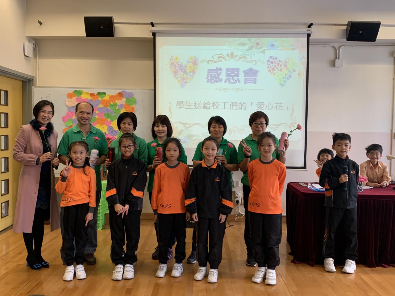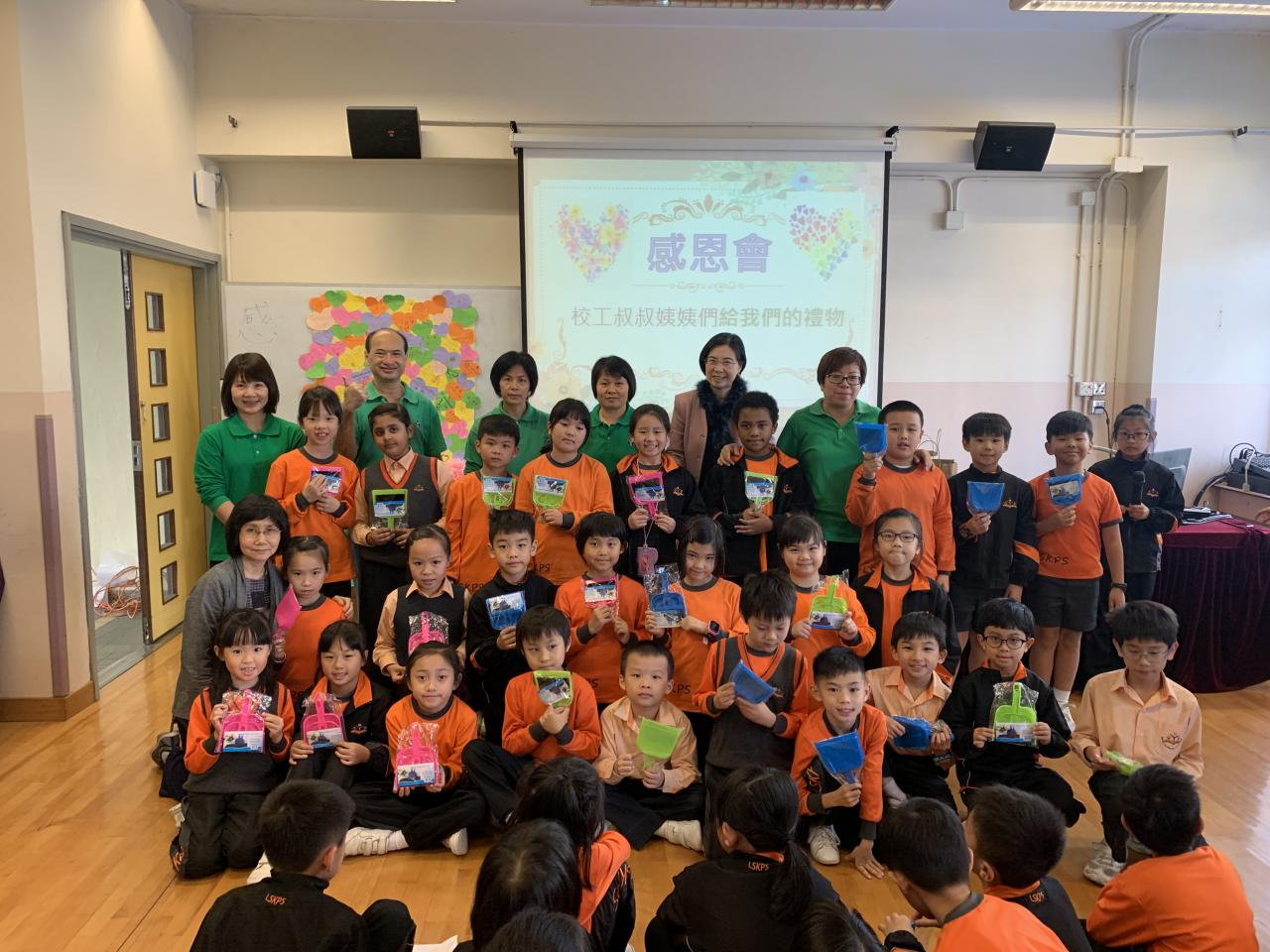 為期一個月的「我愛校園大作戰」在今天充滿掌聲的感恩會中結束,三年級小朋友在這個月體驗到校工叔叔與姨姨每天打掃的辛勤,明白要好好維護校園的整潔,亦培養了他們對一直默默付出的人存有感恩之心。