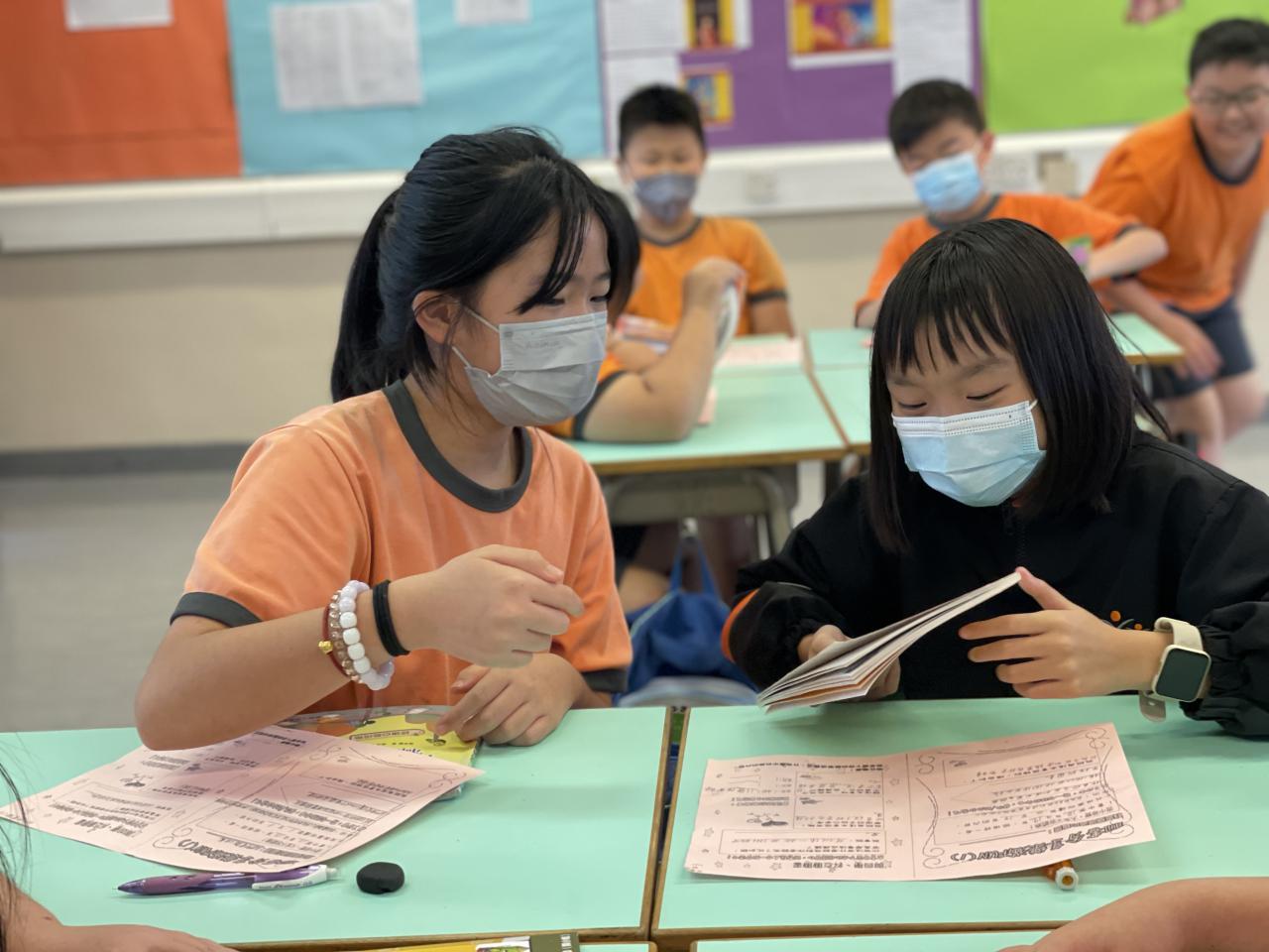 透過聊書活動,提升學生的理解和表達能力。活動前,同學們提前準備一本自己十分喜愛的圖書,在當天帶回校,然後他們把自己分享書中的精彩內容和感想寫在聊書工作紙上,再分成2-3人一組,短短20分鐘之間,他們興高彩烈地進行討論和交流閱讀心得,互相交換自己心愛的圖書,與同學一起分享。