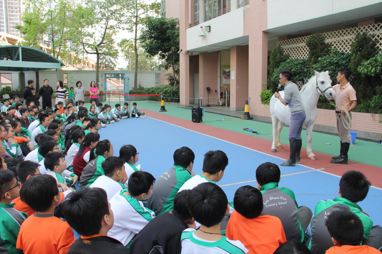 2018年1月23日,小白馬走到我們的校園,跟我們近距離接觸。馬兒來到校園,JASON教練細心地教導我們馬兒的身體的特性、馬兒的喜好,以及飼養馬匹時的要注意的細節,例如怎樣梳刷馬毛、怎樣清理馬兒的「鞋子」------馬蹄鐵。參與的同學可以和馬兒拍照外,更有機會可以餵牠吃美味的紅蘿蔔呢!