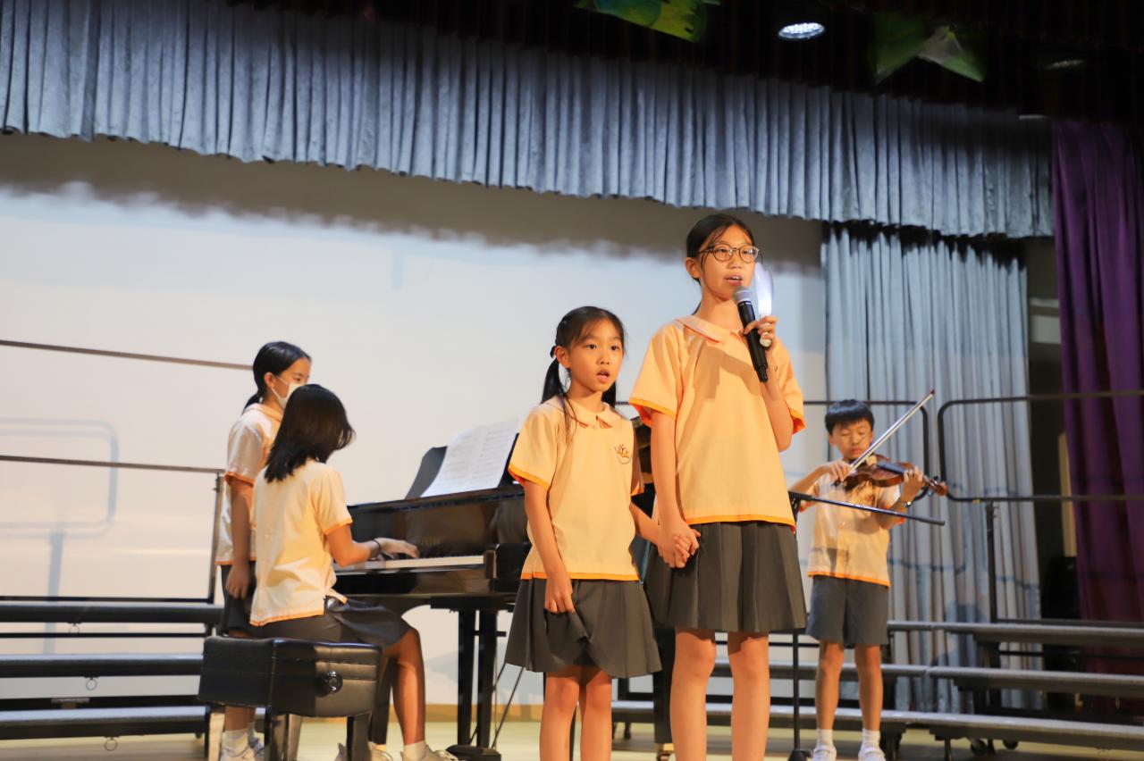 五班畢業生於精彩的表演中展現了他們的自信及活力;師長及嘉賓們接過畢業生親自創作的獨一無二的畢業帽及具本校創客科特色的紀念品後,都驚喜不已;典禮最後一項表演是全體畢業生大合唱,畢業生用美妙的歌聲、動人的歌詞表達對家人、對師長的感謝。最後,大會更邀請了主禮團各位嘉賓、各位老師與全體畢業生大合照留念,這張難得的合照為應屆畢業生留下了極具意義的回憶。